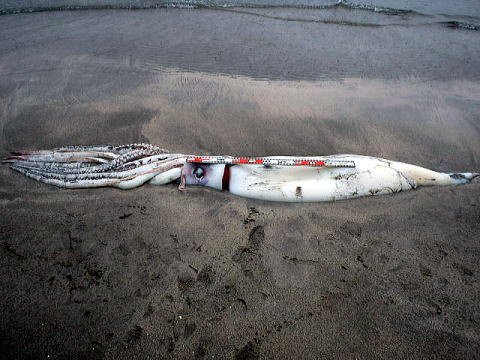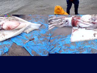 触腕がなくなっていましたが全長約3,5mのダイオオイカでした。