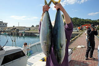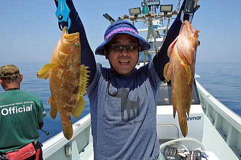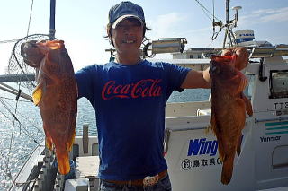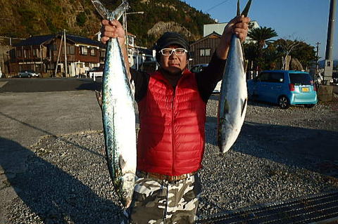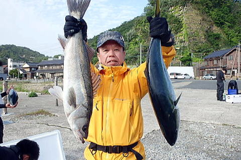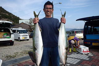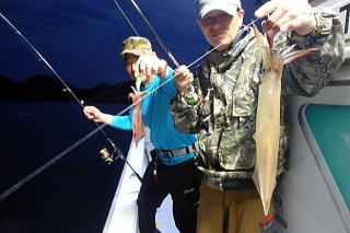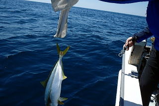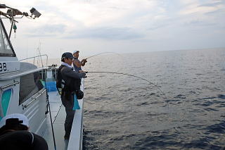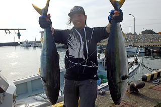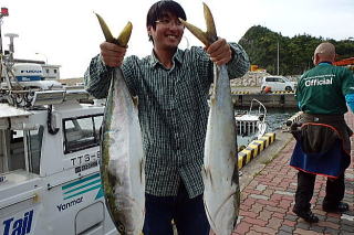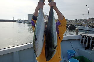 ギャフがなく網入れ失敗して船べりで逃げられましたが、10kgほどのがダブルヒット。