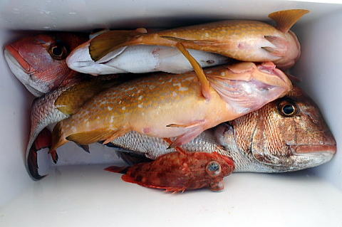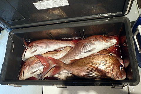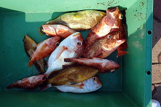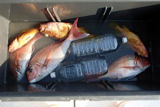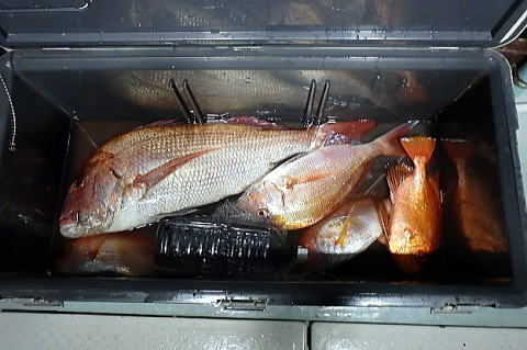 反応あってもくちを使わず、タイラバにマダイ、ガシラ、ヤリイカがヒット。