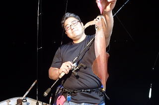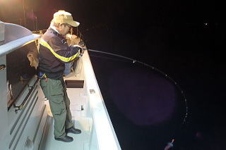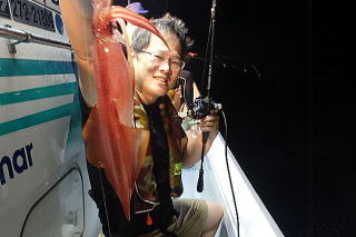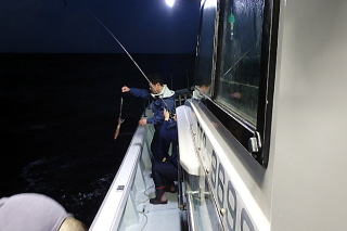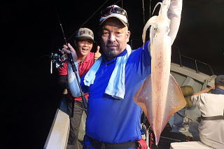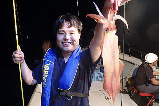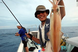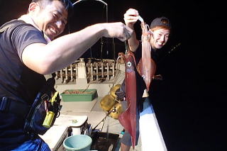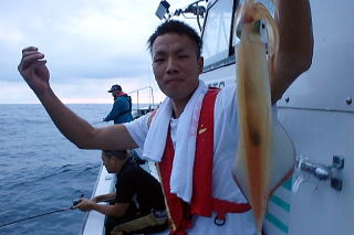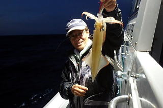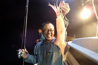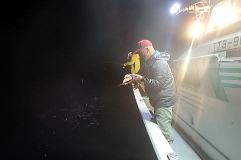 なぜかイカが浮いてこないと思ったら大きなカジキが船についていました。
