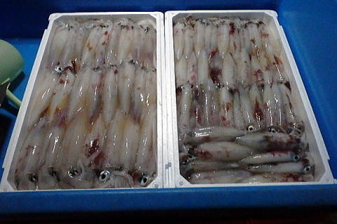 今日はシロイカ渋かったですが、アカイカ(そでいか)がヒット。