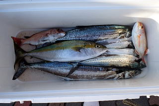 ヒラマサ2、ブリ1、メジロ30ほど 。