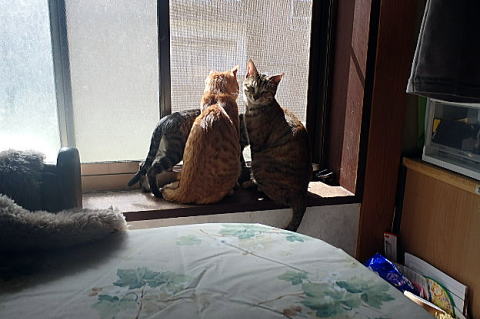 窓辺は猫で大渋滞です。