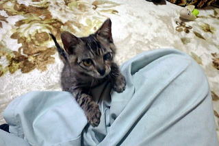 うちに残った兄弟最後のとらちゃんは寂しそうにしています。